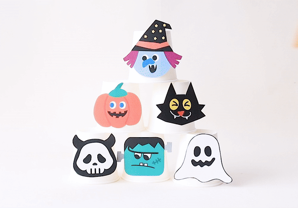 You can enjoy games and create candy baskets for Halloween using paper cups. With the templates prepared by DRAWINART, you can draw and color to complete various Halloween friends. Stick your Halloween friends onto the paper cups to play games and make candy baskets. Itβs a simple and easy way to make Halloween even more fun!
