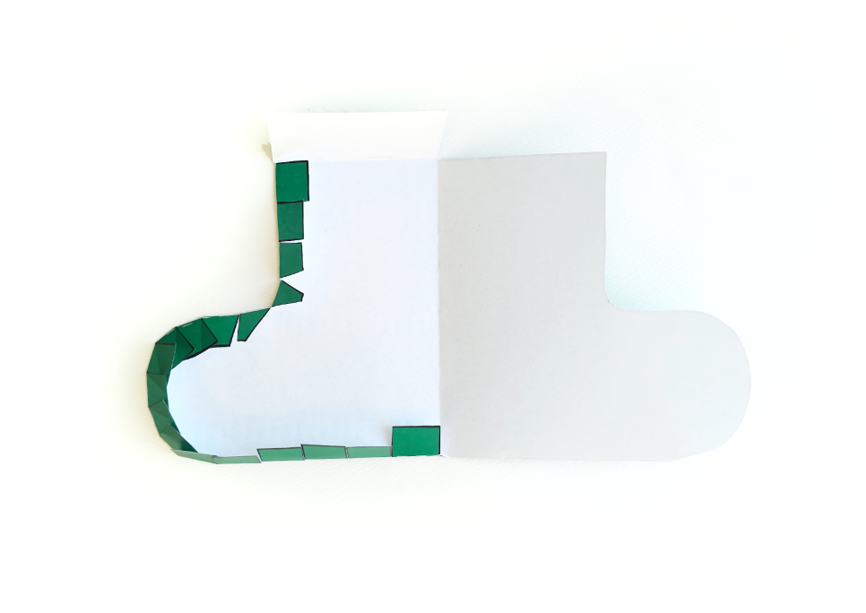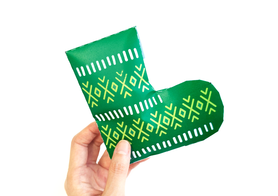 Simply cut along the outline, fold, and glue to assemble your Christmas stocking. Once finished, the stocking can hold small gifts, treats, or little surprises, making it a fun and festive activity for home, classrooms, or holiday parties.