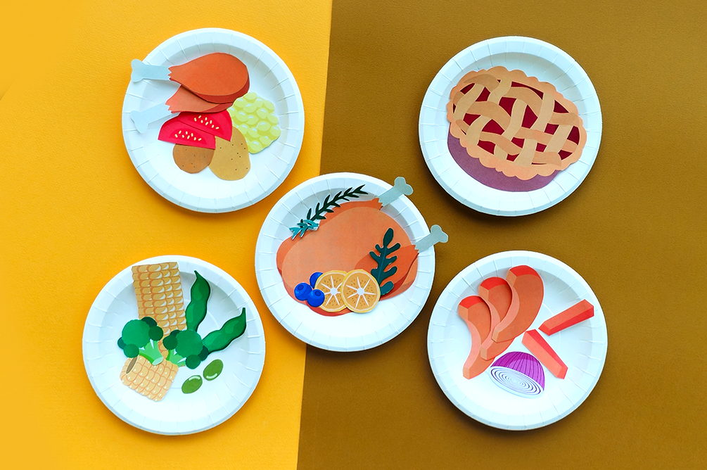 From turkey and mashed potatoes to cranberry sauce and pumpkin pie, children can create their very own festive feast—all on a simple paper plate.