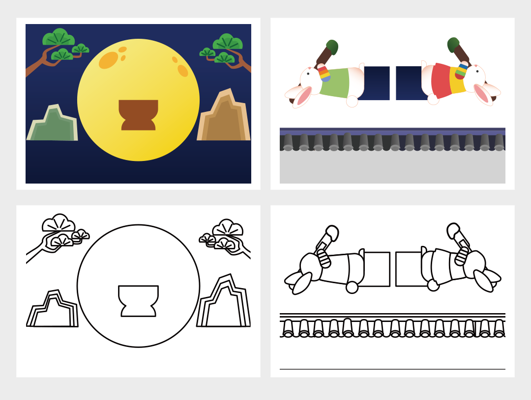 On Chuseok night, families look up at the round moon and make wishes, believing that the moon rabbit may help their hopes come true. Through this drawing activity, children can imagine the rabbit pounding its mortar, then bring the story to life with their own artwork.