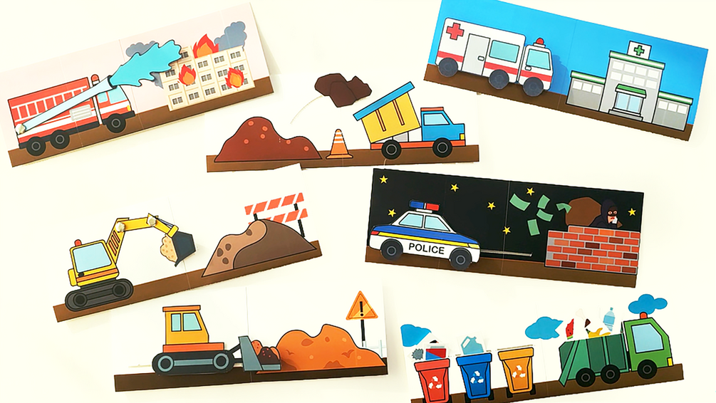 Moving Vehicles Craft Set for Kids - Fire truck, Police car, Ambulance, Loader, Garbage truck