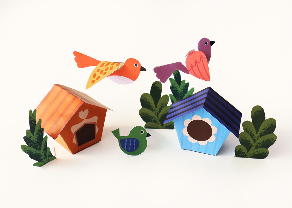 Looking for a fun and creative activity for your little ones? This delightful paper craft set features three adorable bird designs and a decorative birdhouse—perfect for sparking their imagination!