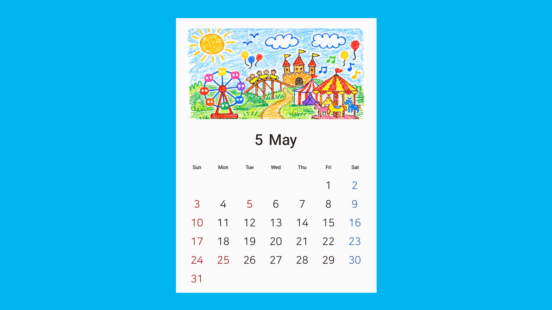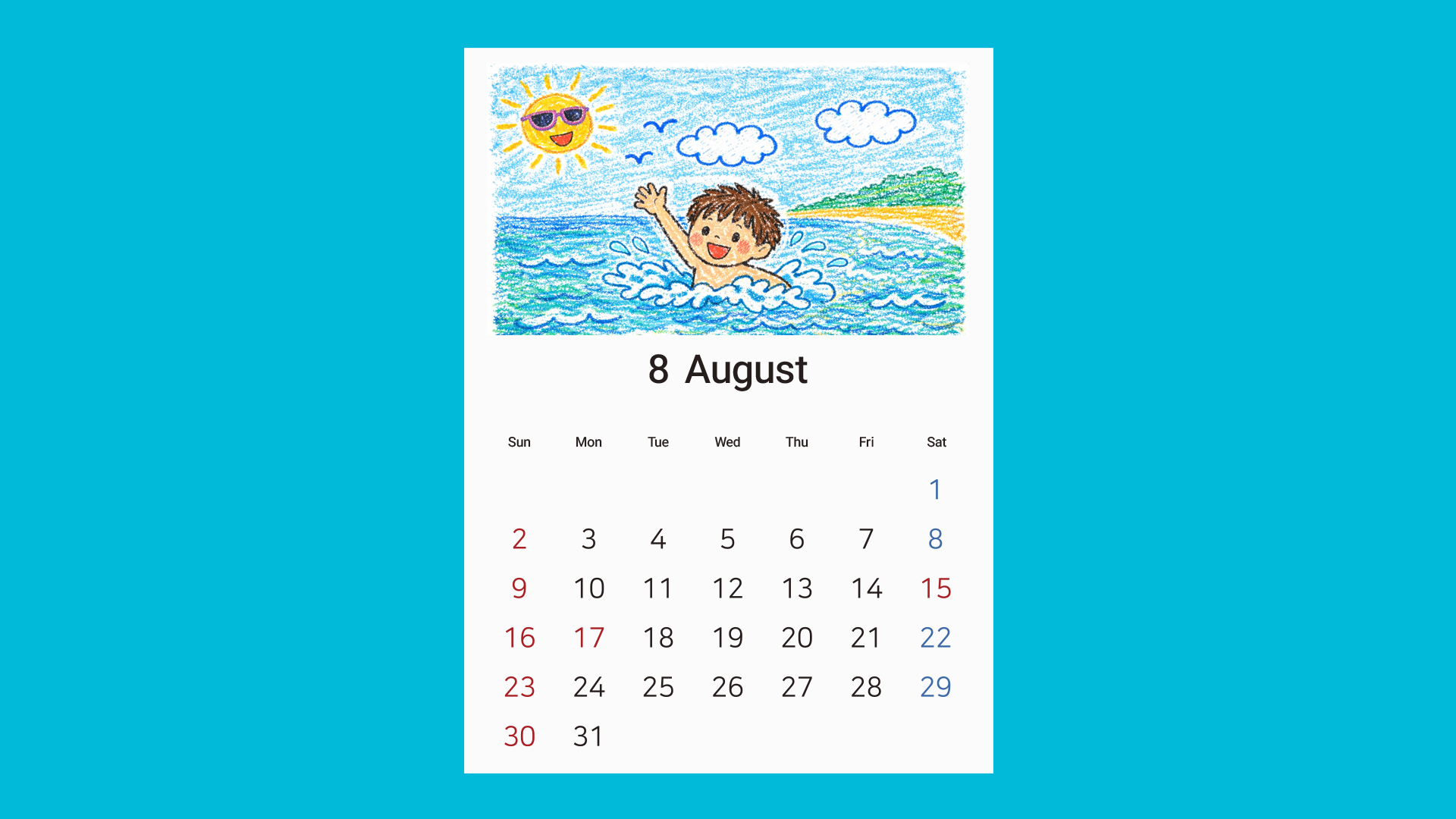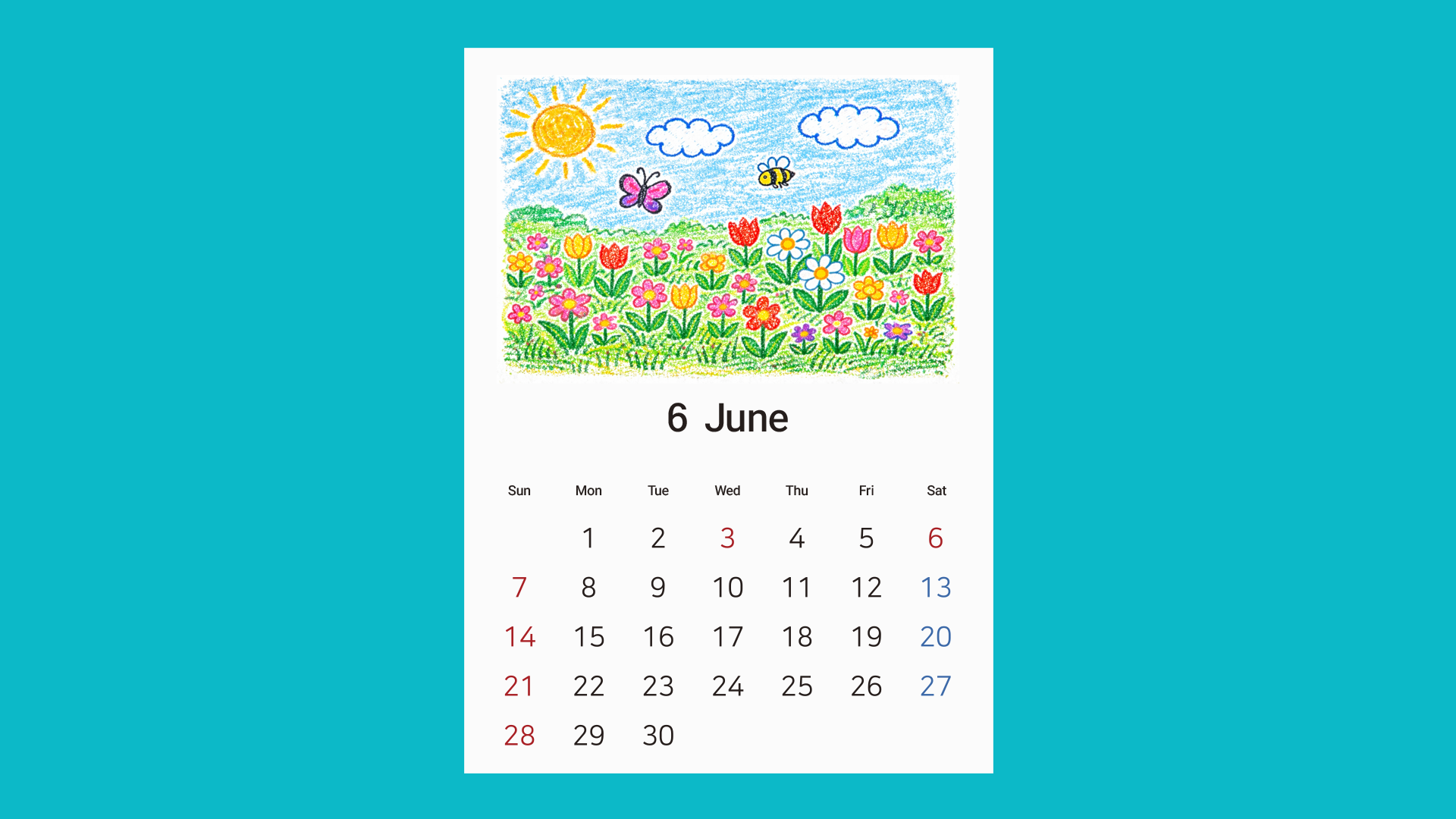 This printable calendar helps children actively participate in completing their own calendar through drawing and coloring.