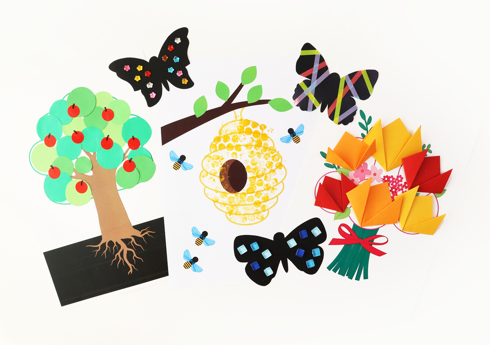 🌼 I've prepared a fun art activity template that helps develop fine motor skills! With this template, you can enjoy four different creative activities. First, you can dip bubble wrap in paint to create a honeycomb pattern. You can also use stickers or colored paper to decorate a tree and a butterfly. Folding colored paper to make a beautiful bouquet is another great way to enhance fine motor skills while having fun. Through origami, children can naturally strengthen their fine motor movements and improve their concentration. This delightful spring-themed activity is perfect for welcoming the new season with joy!