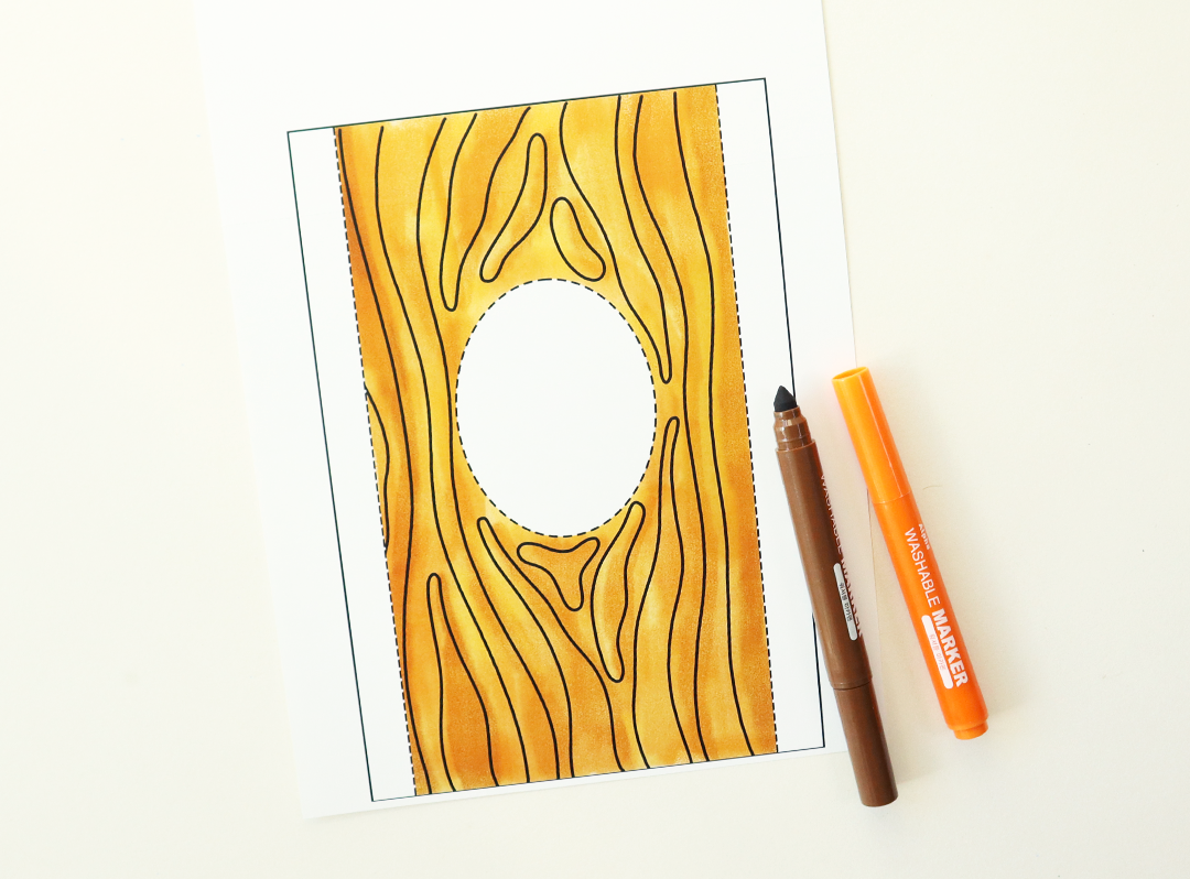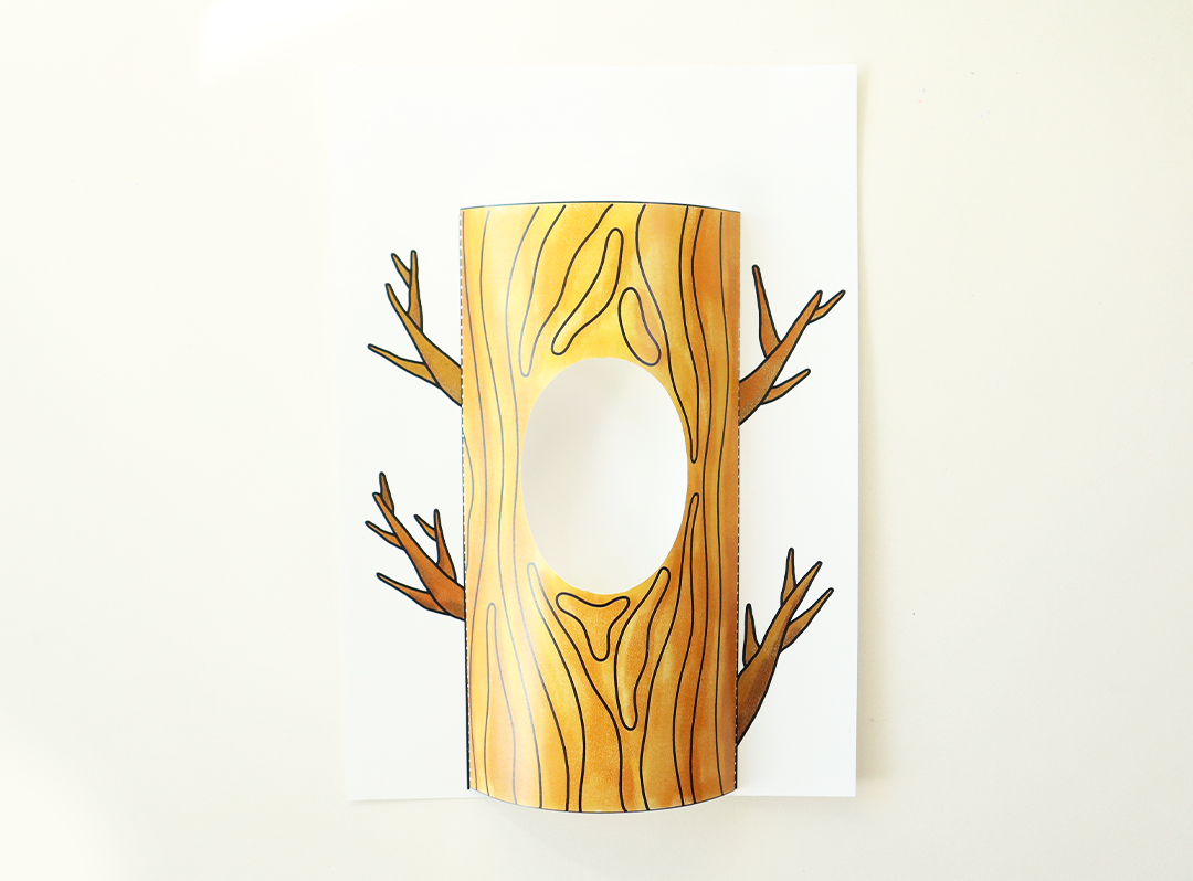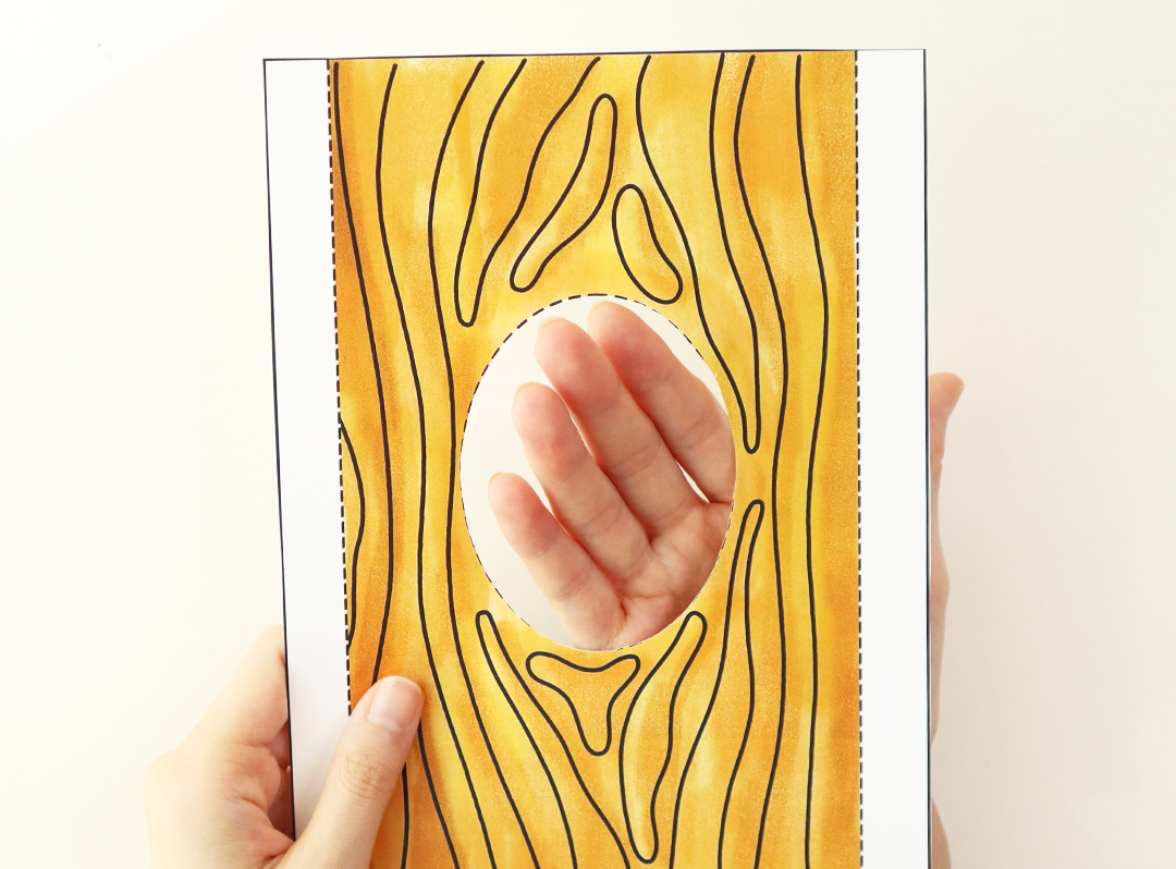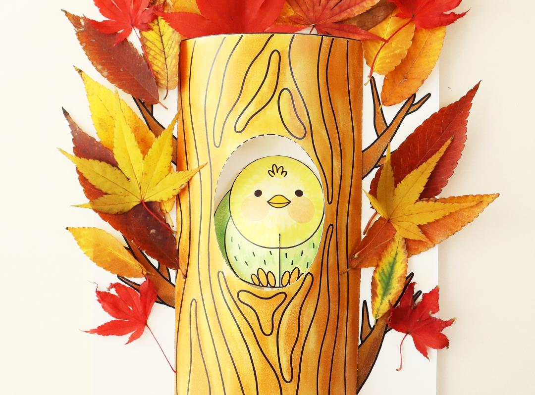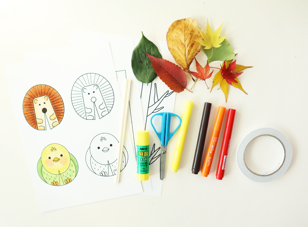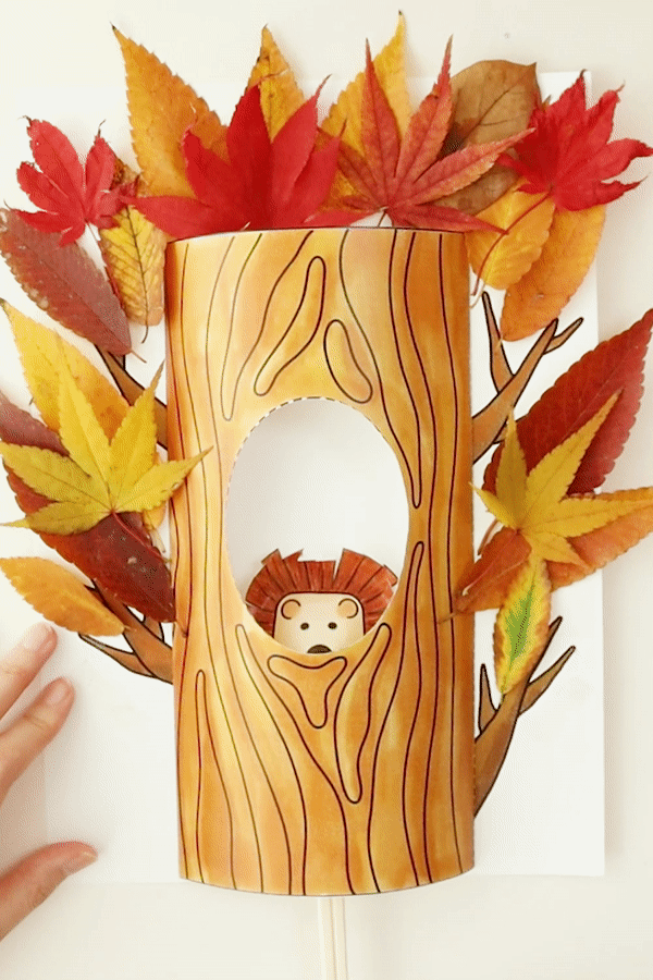 Using real fall leaves and this printable template, kids can design their own maple tree and hide animals behind it. The movable wooden stick lets the animals pop up and disappear like magic!