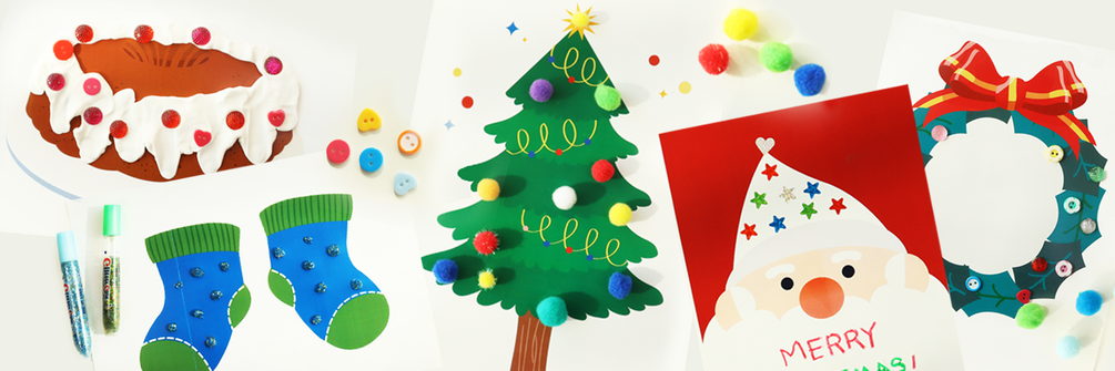 This set includes 5 festive designs — a Christmas tree, Santa, wreath, cake, and stocking. Kids can decorate each mat using playdough, stickers, pom-poms, markers, and more to create their own unique Christmas artwork.