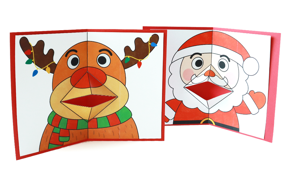 This festive art craft set includes Santa and Rudolph templates designed for making fun pop-up cards!