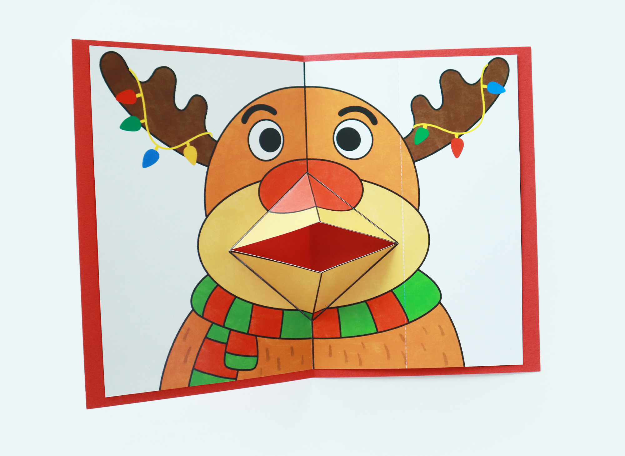 When you move the card, Santa and Rudolph’s mouths open and close, making them look like they’re singing Christmas songs!