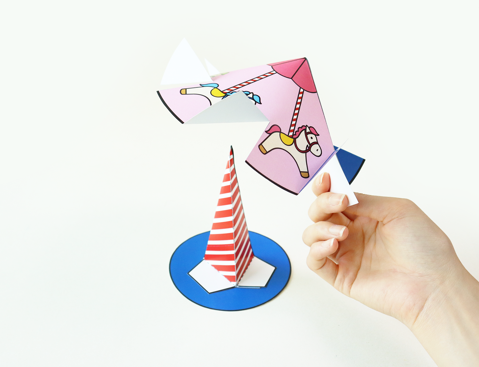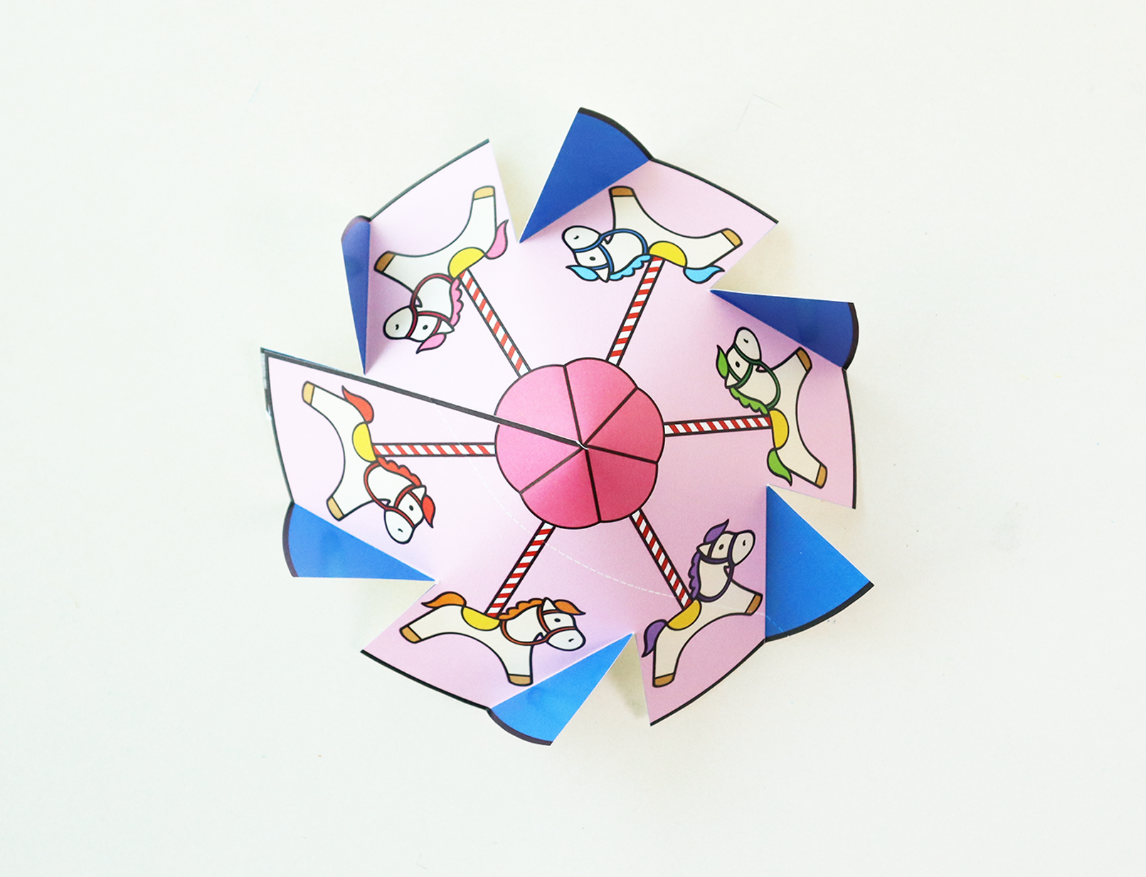 Create a charming spinning carousel with this easy and fun paper craft template!