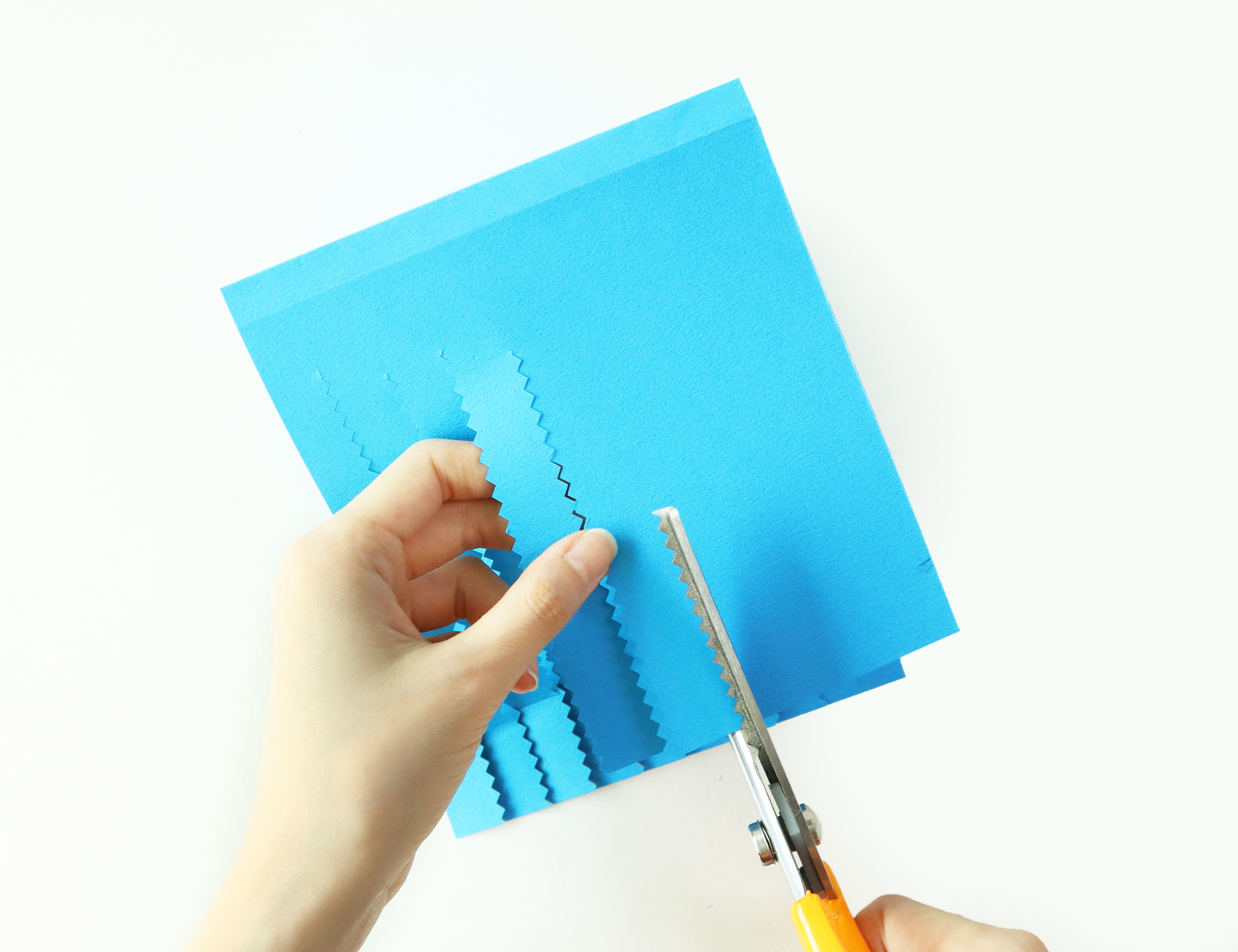 2. Cut the paper vertically into strips to create the troll’s hair.